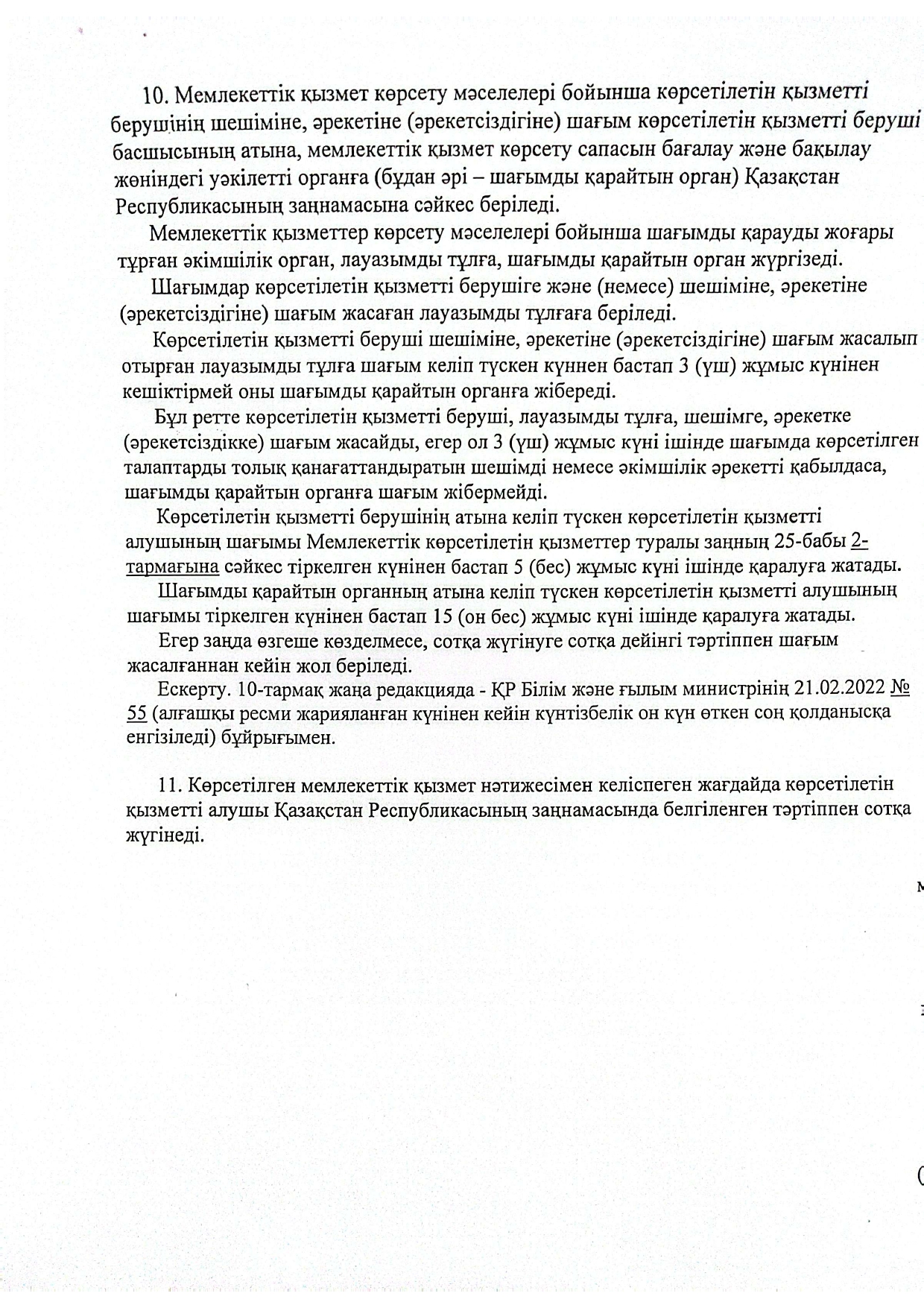 02 сентябрь 2025 0 1 2 3 4 5 Қазақстан Республикасы Білім және ғылым министрінің 2020 жылғы 24 сәуірдегі № 158 бұйрығына 10-қосымша