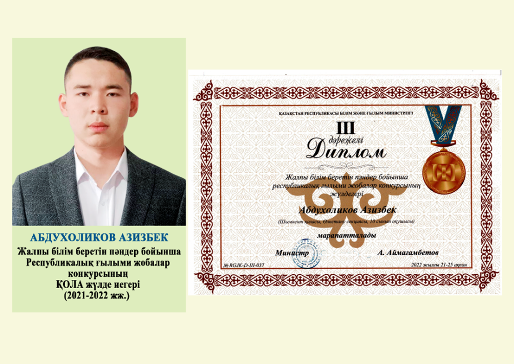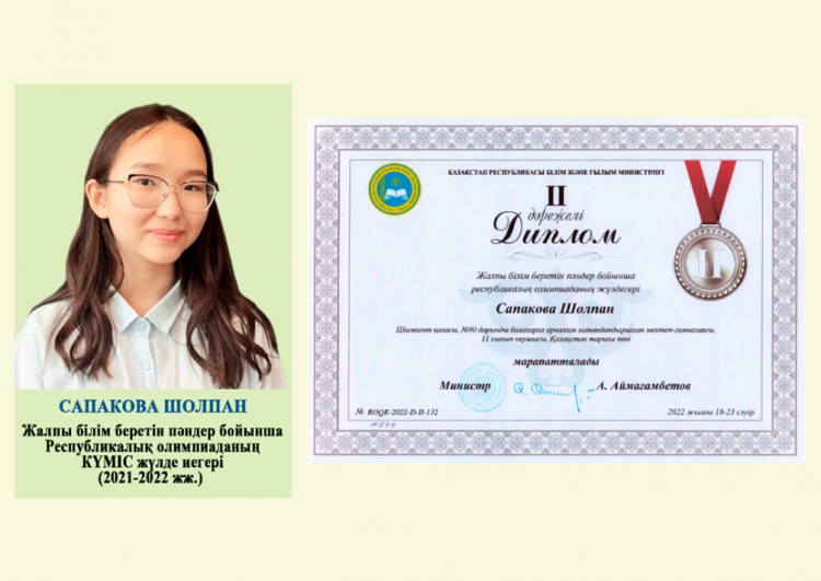 01 сентябрь 2023 0 1 2 3 4 5 Достижение школьников Республикалық ғылыми жобалар конкурсының жеңімпаздарыРеспубликалық Пәндік олимпиада жеңімпаздарыӘртүрлі байқау жеңімпаздары