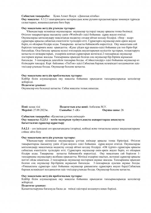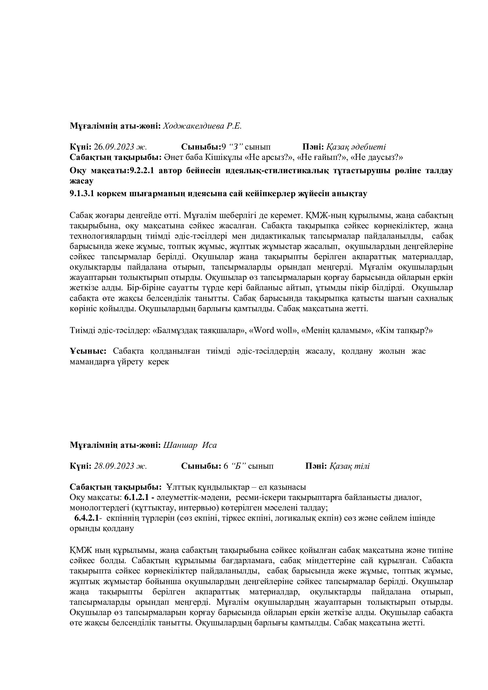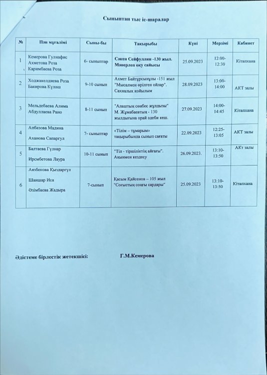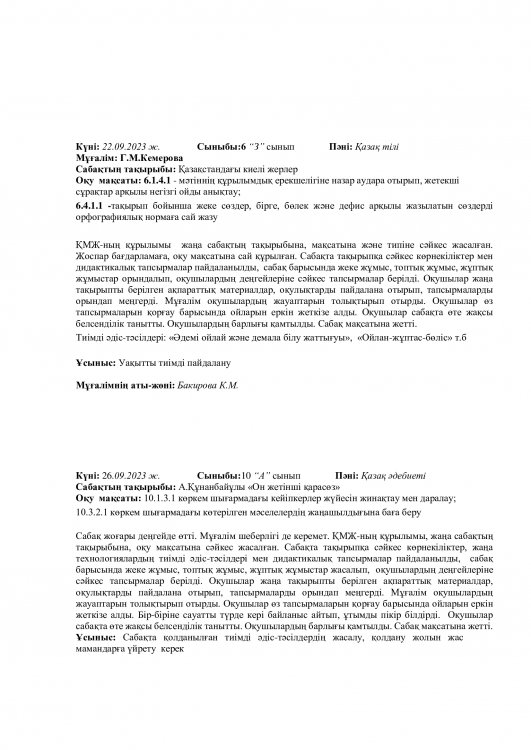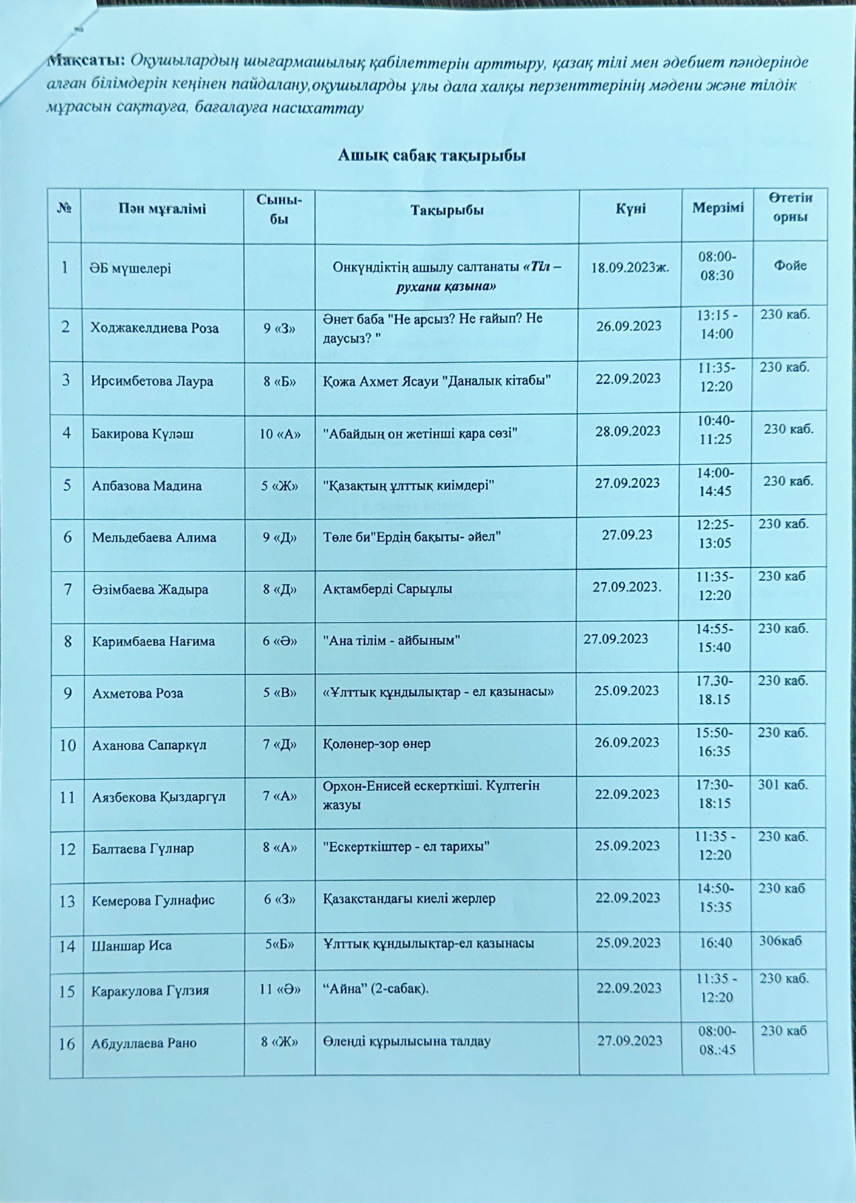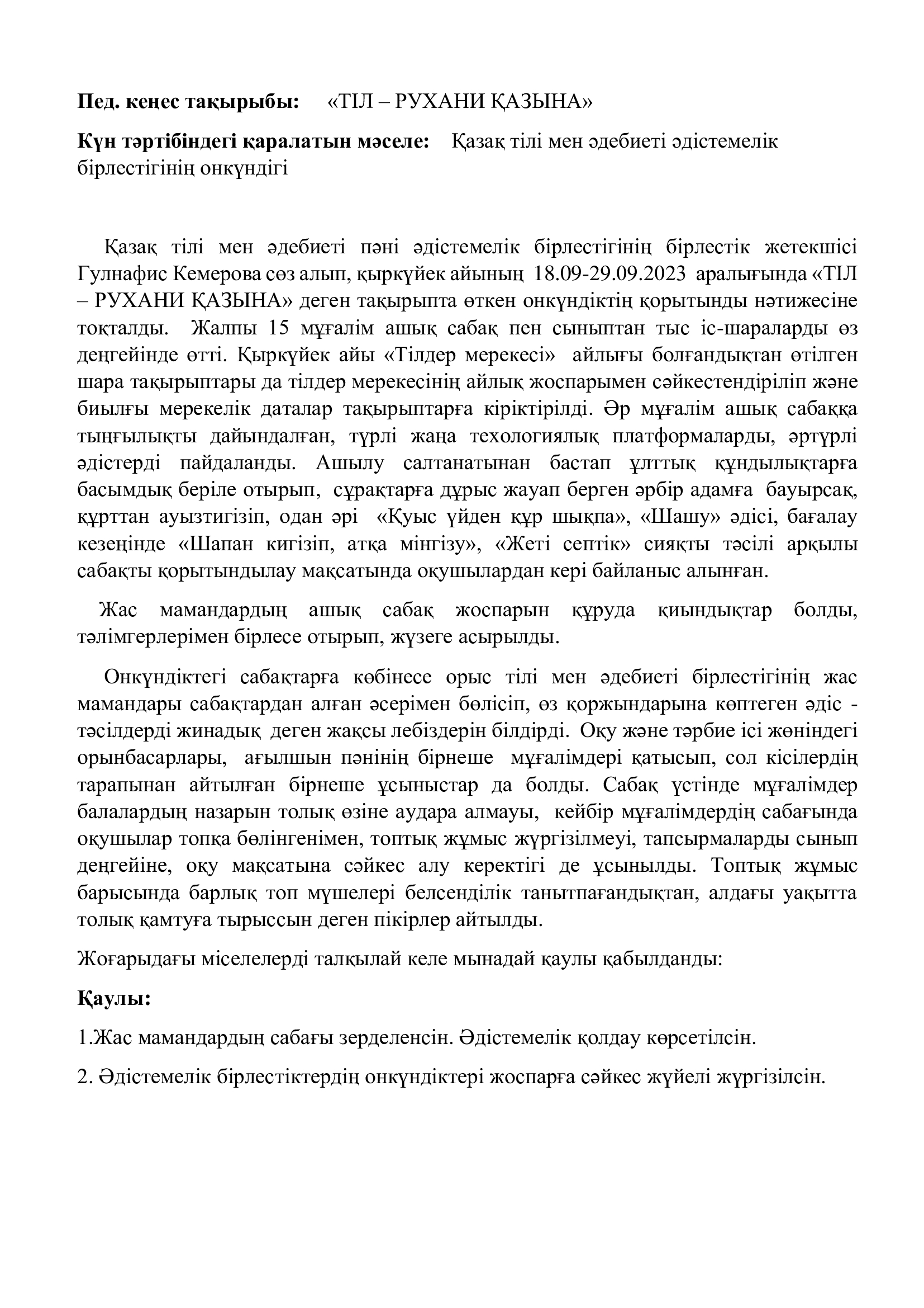 29 сентябрь 2023 0 1 2 3 4 5 Қазақ тілі мен әдебиеті пәні әдістемелік бірлестігінің онкүндік жоспары мен есебі Қазақ тілі мен әдебиеті пәні әдістемелік бірлестігінің онкүндік жоспары Қазақ тілі мен әдебиеті пәні әдістемелік бірлестігінің онкүндік есебі