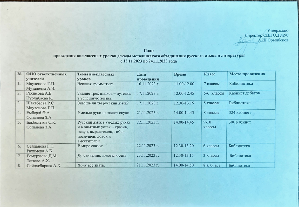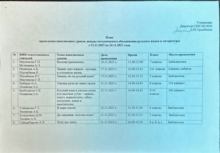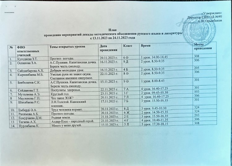 24 ноябрь 2023 0 1 2 3 4 5 Орыс тілі мен әдебиеті пәні әдістемелік бірлестігінің онкүндік жоспары мен есебі Орыс тілі мен әдебиеті пәні әдістемелік бірлестігінің онкүндік жоспары мен есебі