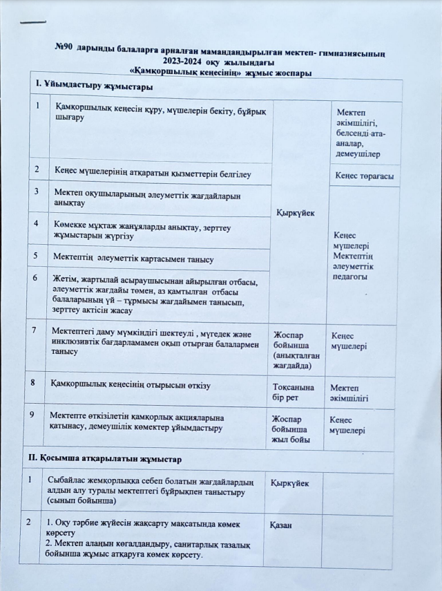 Попечительский совет жоспары » №90 дарынды балаларға арналған мамандандырылған мектеп-гимназиясы