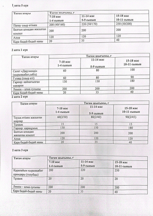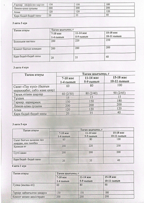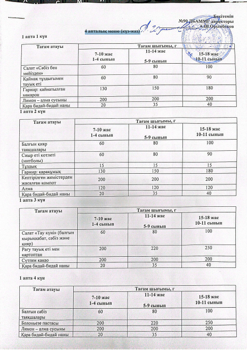 4 апталық меню (күз-жаз) » №90 дарынды балаларға арналған мамандандырылған мектеп-гимназиясы