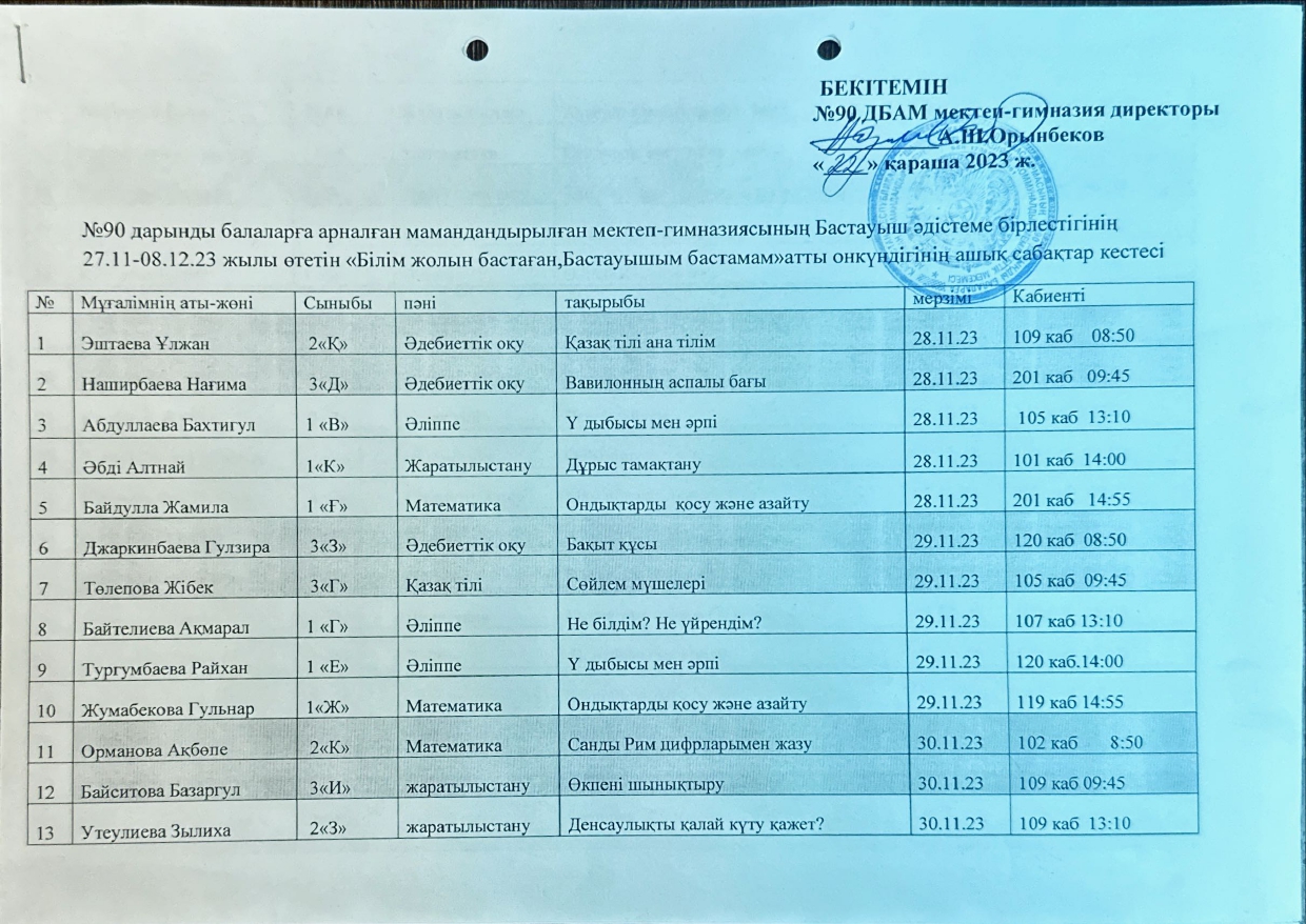 Бастауыш сынып бірлестігінің онкүндік жоспары