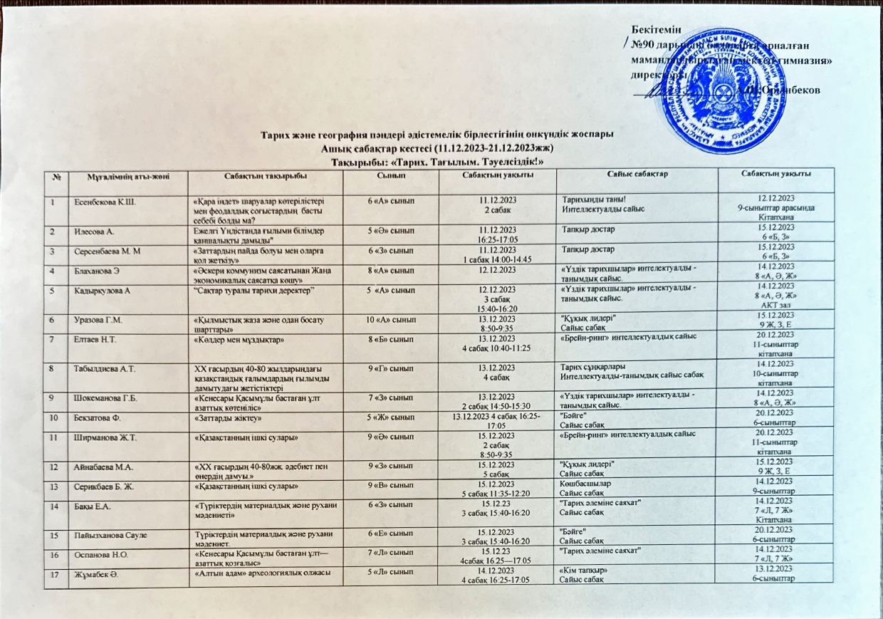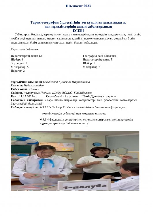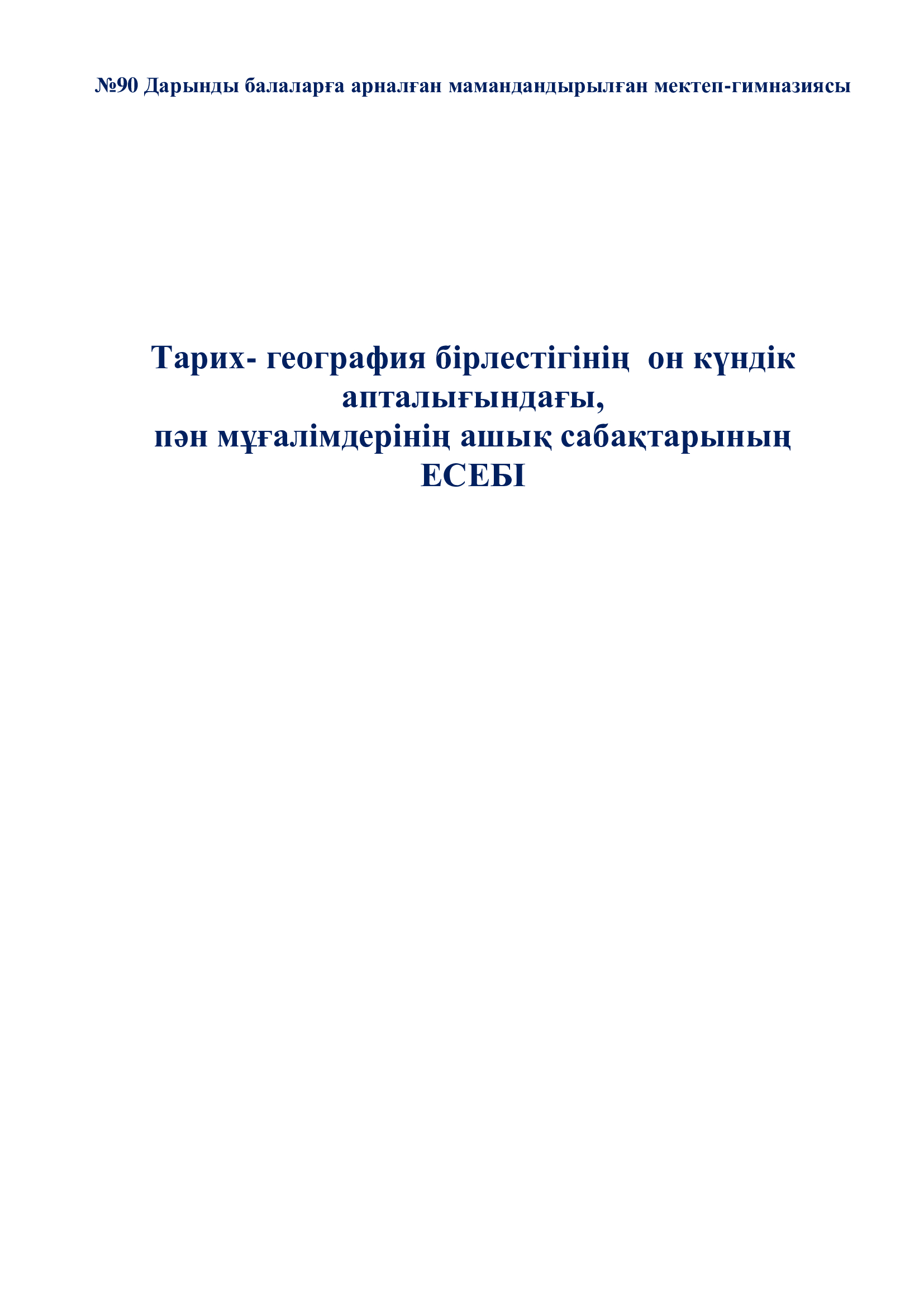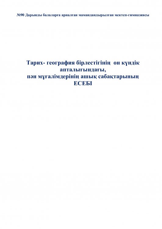 Тарих және география пәндері әдістемелік бірлестігінің онкүндік есебі