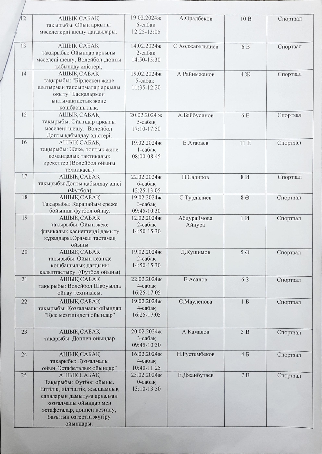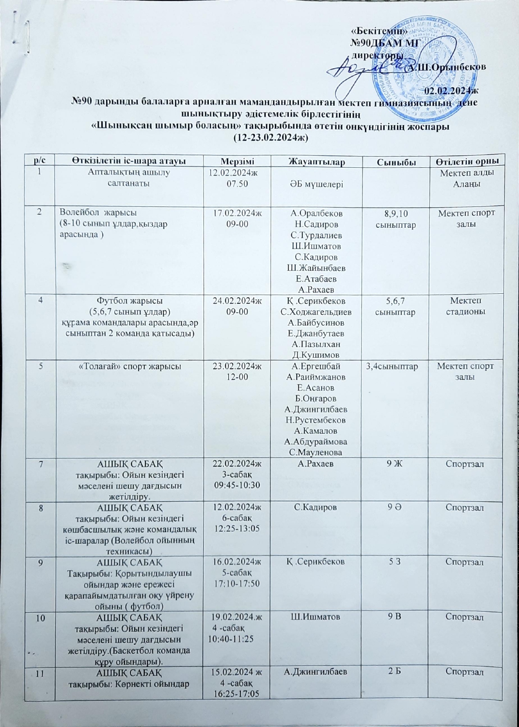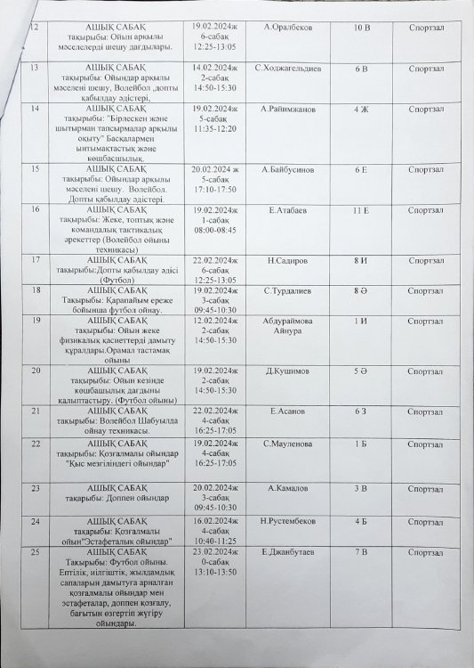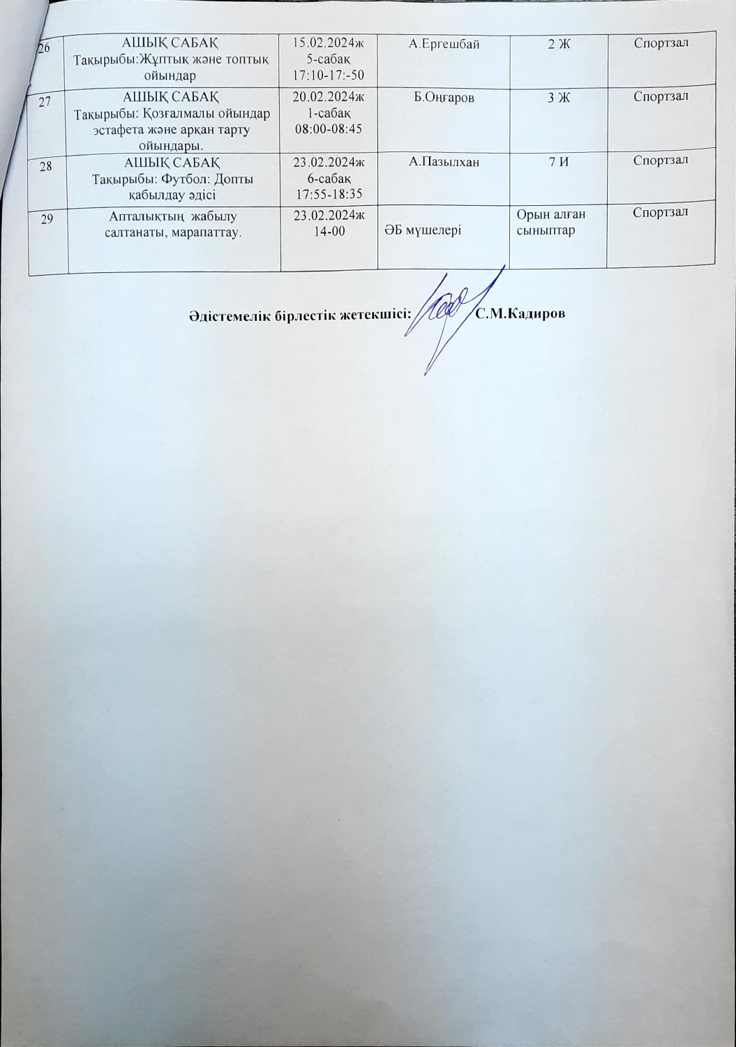 Дене шынықтыру және АӘД пәндері әдістемелік бірлестігінің онкүндік жоспары