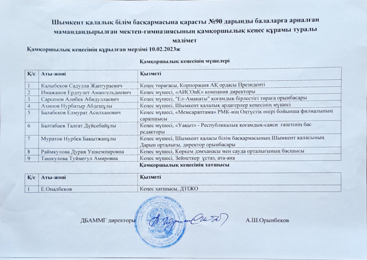 💠Қамқоршылық кеңес құрамы: