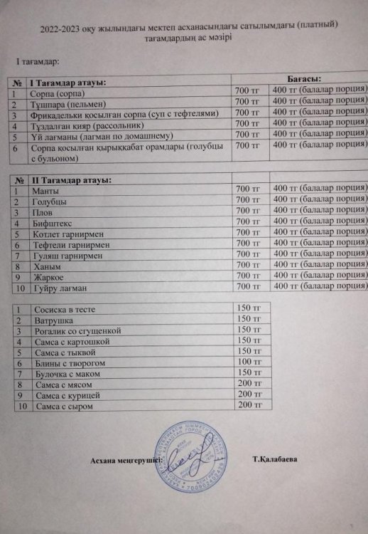 » » » 2021-2022 оқу жылында мектеп асханасындағы ас мәзірі