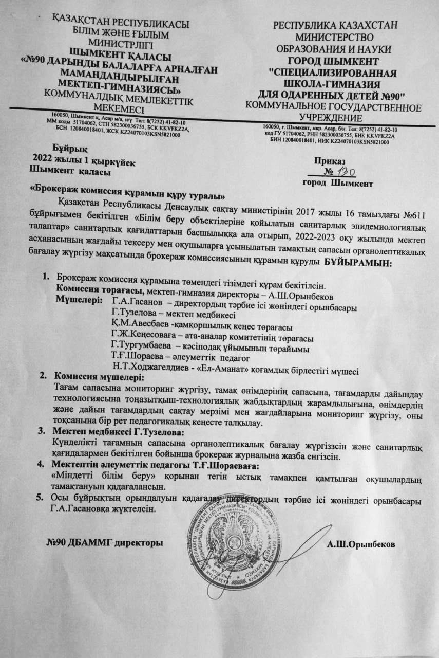 Брокераж комиссия құрамы » №90 дарынды балаларға арналған мамандандырылған мектеп-гимназиясы