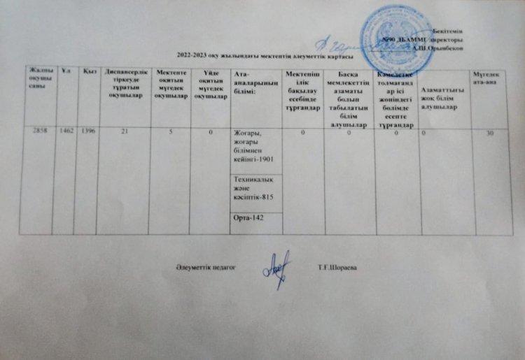Мектептің әлеуметтік картасы 2022-2023 оқу жылы » №90 дарынды балаларға арналған мамандандырылған мектеп-гимназиясы