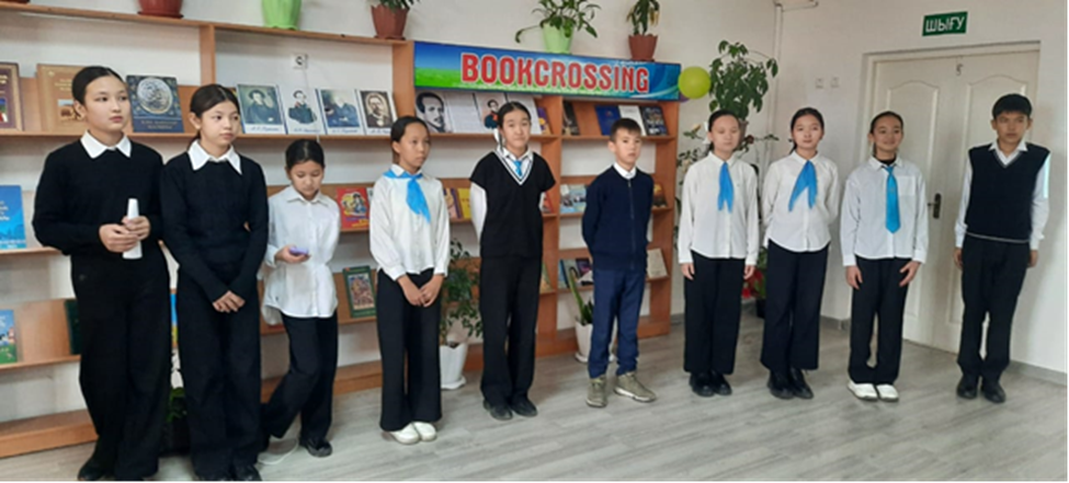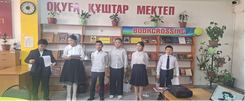 9 З сынып оқушысы Жагипбар Сара өзі оқыған кітаптармен ой-толғастарын айтып берді. Кітап оқымай білім толмайды, көз көрмей, көңіл тынбайды, оқырмандарға айтарым: көңіліңе ұнаған кітапты күн сайын оқу керек, тіпті жылына бір рет қайталап оқу керек, сонда одан бұрын аңғартатын көптеген пікірлерді табасың дейді.